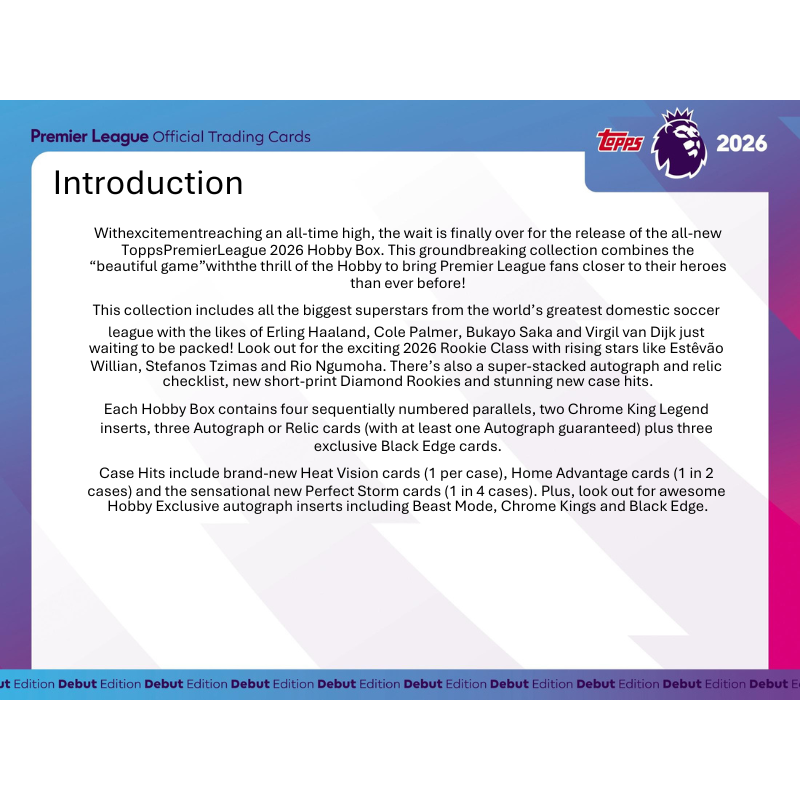 - With excitement reaching an all-time high, the wait is finally over for the release of the all-new Topps Premier League 2026 Hobby Box!